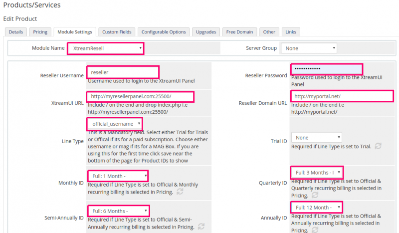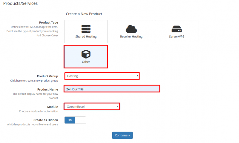 12. Fill in the above information. Make sure you select "XtreamResell" as the module. Click Continue.