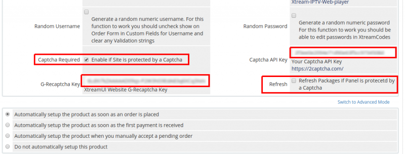 28. Now to go to your module settings. In the field "Captcha API Key" put the api key from 2captcha. In the "G-Recaptcha Key" put the key you copied from your Panel page source. Check the box "Captcha Required" and Check the box "Refresh" and click save. NOTE: You only click "Refresh" once. This will force ProjectX to login to your panel to get your products. This could take up to a minute to complete. If nothing has happend by then just close go back to "products and services" and reopen the module again. Refresh should auto uncheck once your products have been retrieved.
