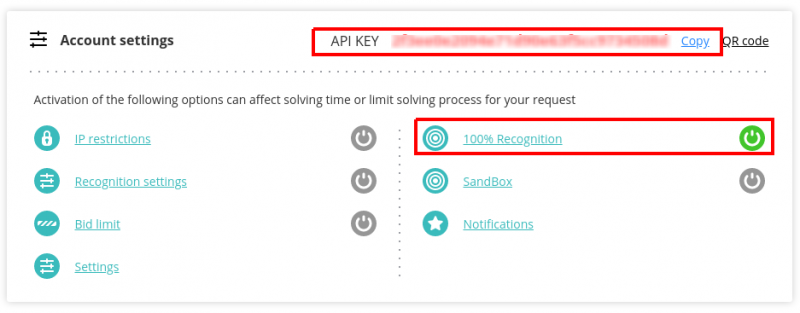 25. Once Signed up go to your dashboard and copy your "API Key" and enable "100 recognition".